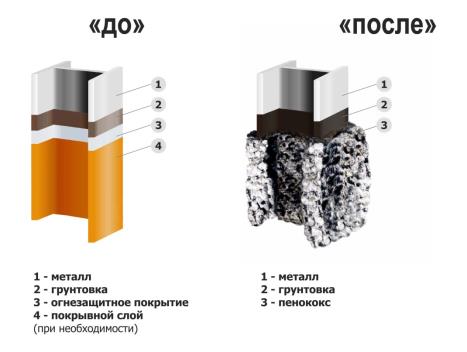 Показатель Эффективность огнезащитных покрытий во многом зависит от их способности замедлять распространение огня и снижать температуру обрабатываемой поверхности. Основу действия таких материалов составляет образование защитного слоя, который препятствует попаданию кислорода и огня к базовому материалу, а также снижает скорость теплопередачи. Это достигается за счет химических реакций, в ходе которых покрытия расширяются, образуя вспененную структуру или выделяют негорючие газы. Тем самым происходит создание барьера, который увеличивает время сопротивления поверхности воздействию пламени.